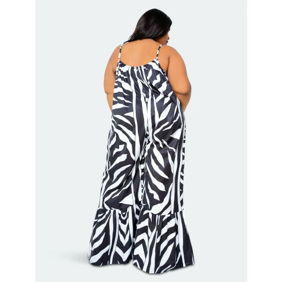– Zebra print- Relaxed fit- Adjustable spaghetti straps- Flutter hem detail- 97% polyester, 3% spandex- Machine wash cold on gentle cycle. Do not bleach- True to size- Our model is 5’8″ · Wearing 2X