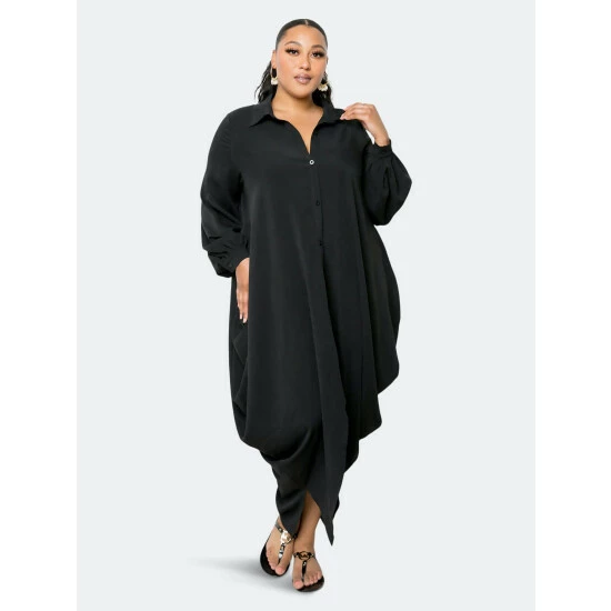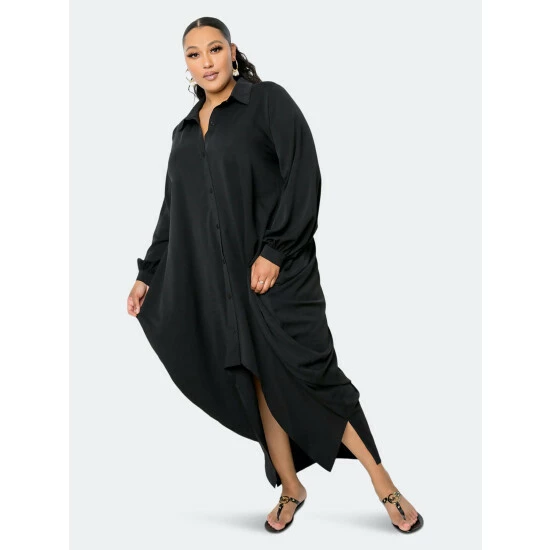 Buxom Couture Voluminous Poplin Midi Dress Dresses & Jumpsuits Black