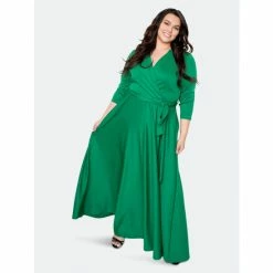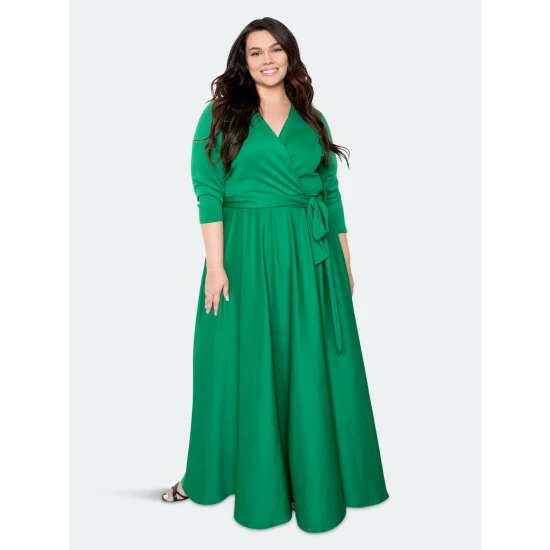– 3/4 Sleeve, Pockets- Surplice dress with waist tie- Medium weight, stretchy scuba material