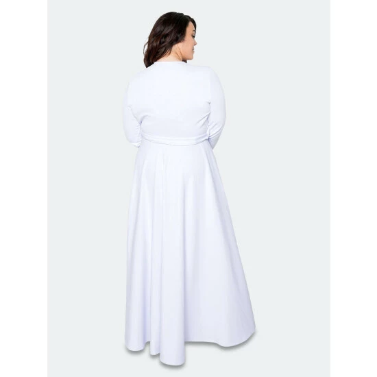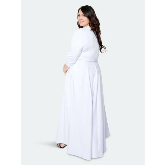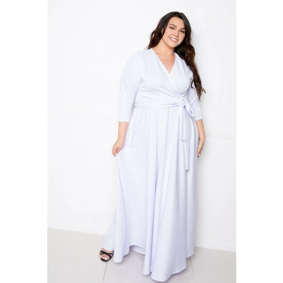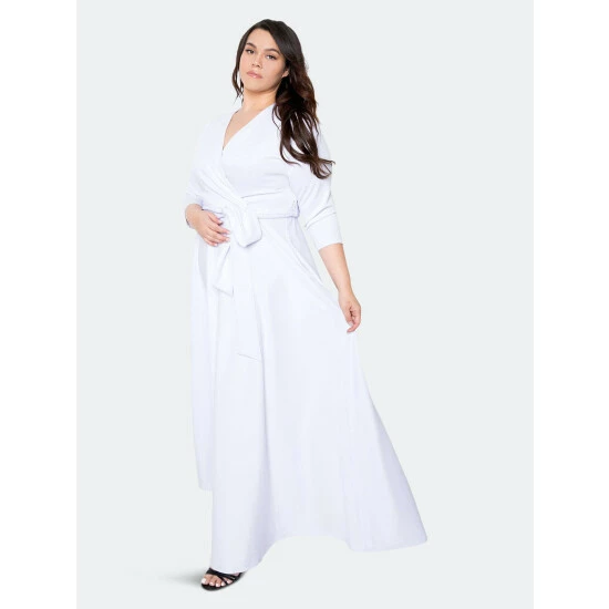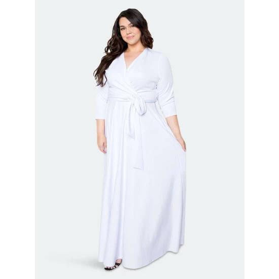 – 3/4 Sleeve, Pockets- Surplice dress with waist tie- Medium weight, stretchy scuba material