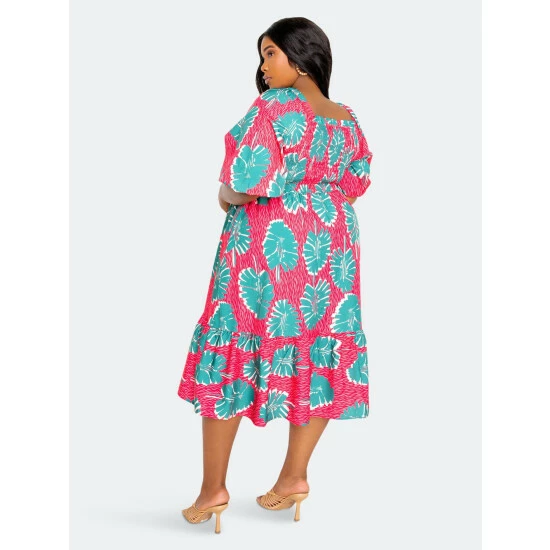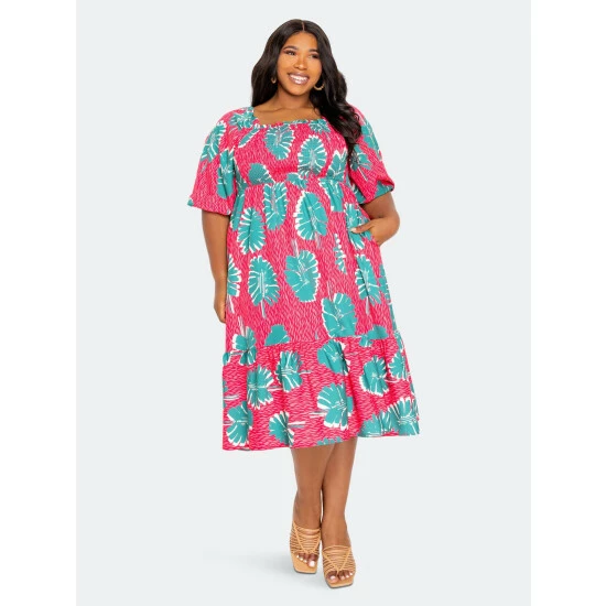 – Square neckline- Puff sleeve- Smocked top- Invisible side pockets- True to size- Our model is 5’8″ · wearing 2x