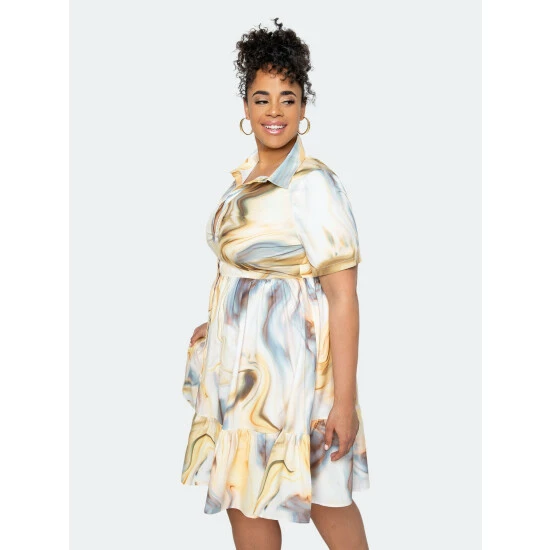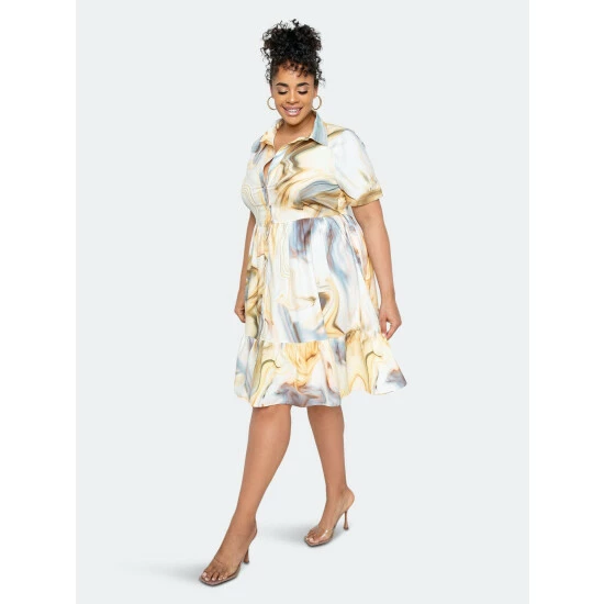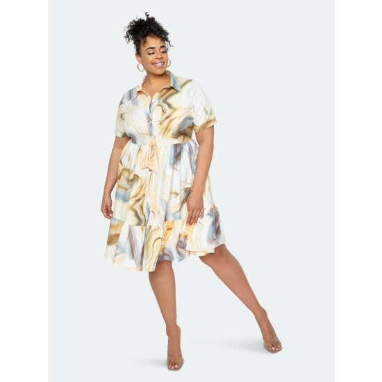 – Short sleeve shirt dress- Featuring tiered hem- True to size- 1x=14-16, 2x=18-20, 3x=22-24- Our model is 5’11” – Wearing 2x