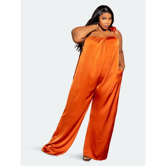 Buxom Couture Satin Tie Shoulder Jumpsuit Jumpsuits & Rompers Rust