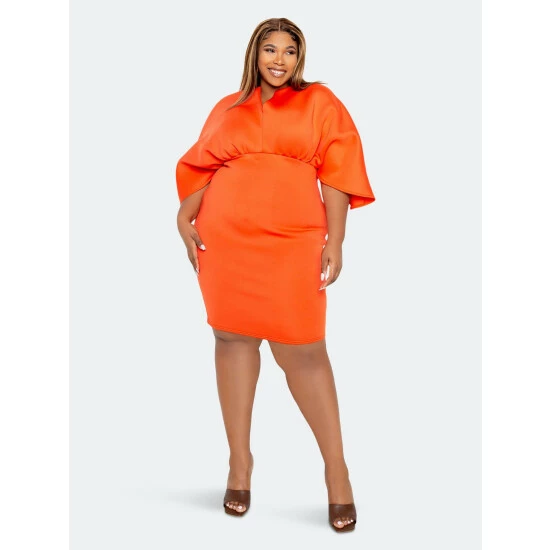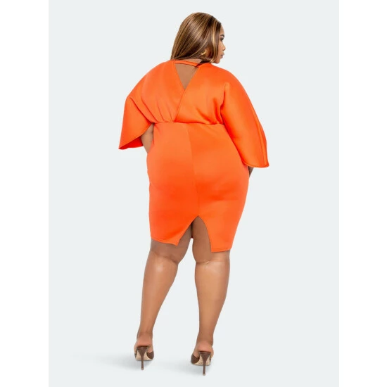 Buxom Couture Scuba Cape Sleeve Bodycon Midi Dress Dresses & Jumpsuits Orange