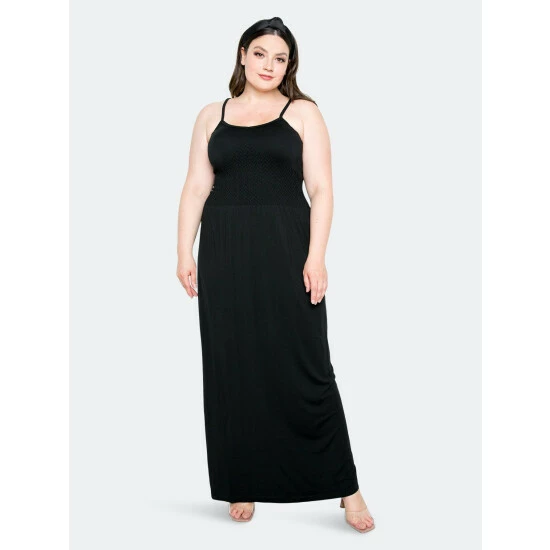 – Premium quality modal seamless maxi dress- Adjustable spaghetti strap- Smocked textured top- This is one size (1X-3X) item, Our model is 5’10”