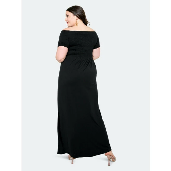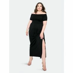 – Premium quality modal seamless – Smocking- Side slit- 52% modal, 46% nylon, 2% spandex- Machine wash cold on gentle cycle.- Do not bleach- This is one size (1X-3X) item- Our model is 5’10”