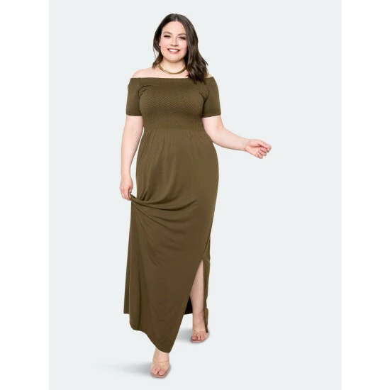 Buxom Couture Seamless Off Shoulder Maxi Dress Dresses Olive