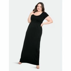 – Premium quality modal seamless maxi dress – Scooped neck smocked texture- This is one size (1X-3X) item- Our model is 5’10”