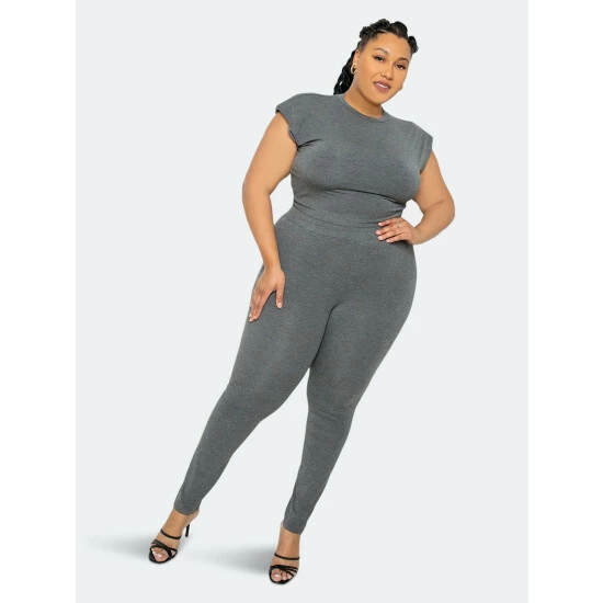– Shoulder pad cropped t-shirt- High-waisted leggings- Supersoft premium modal material