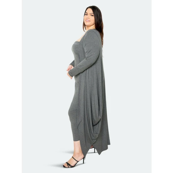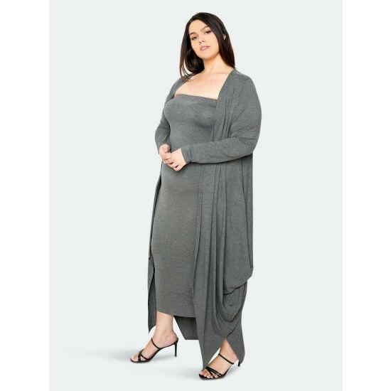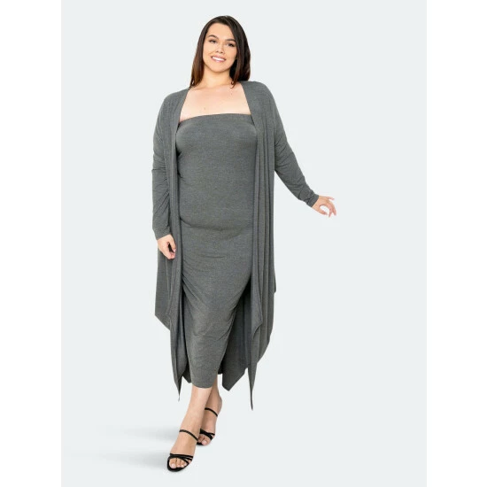 – Tube midi dress- Flowy open cardigan with bubbled hem detail- Supersoft premium modal material