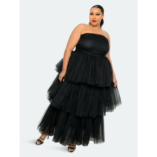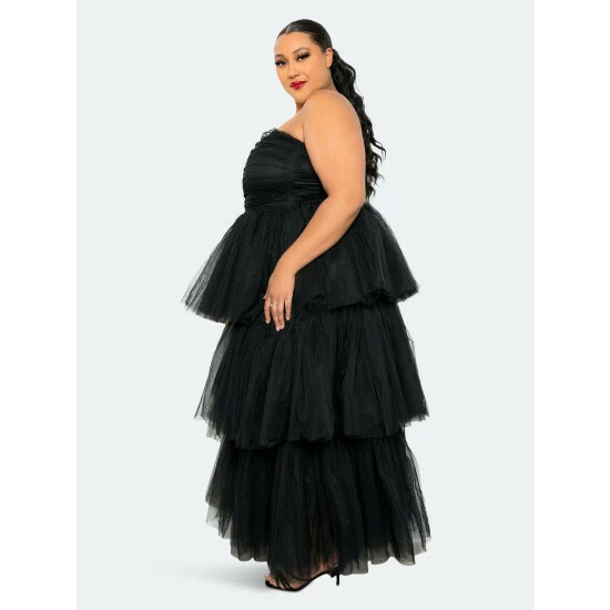 – Ruched mesh tube top- 3 layered tulle skirt bottom- Invisible zipper on the back- Partially lined