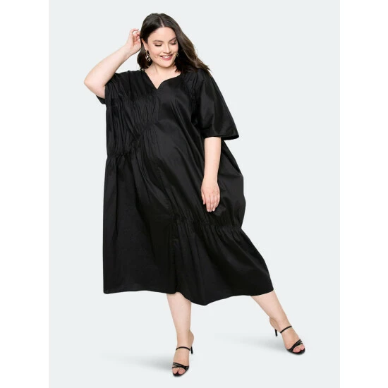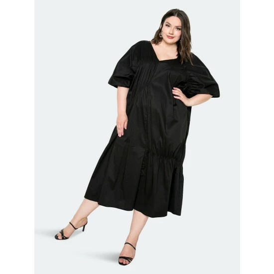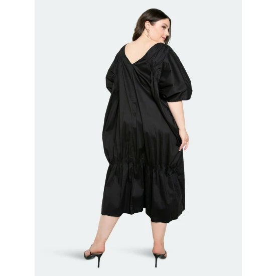 – Light Blue- Voluminous puffed sleeves- Ruched detail and flutter hem – 65% Cotton, 32% Polyester, 3% Spandex – Machine wash cold on gentle cycle. Do not bleach- Imported