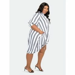 Buxom Couture Asymmetric Stripe Shirt Dress – Black Stripe Dresses