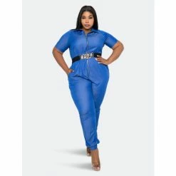 Buxom Couture Obi-Tie Denim Harem Jumpsuit Jumpsuits & Rompers Dark Denim
