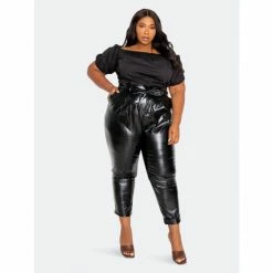 Buxom Couture Leather Effect Ruched Waist Shirt Dress Dresses & Jumpsuits Black