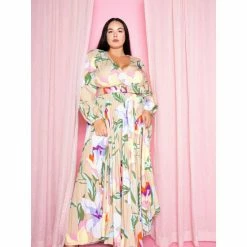 Buxom Couture Floral Pleated Maxi Dress With Belt Dresses & Jumpsuits Beige Floral